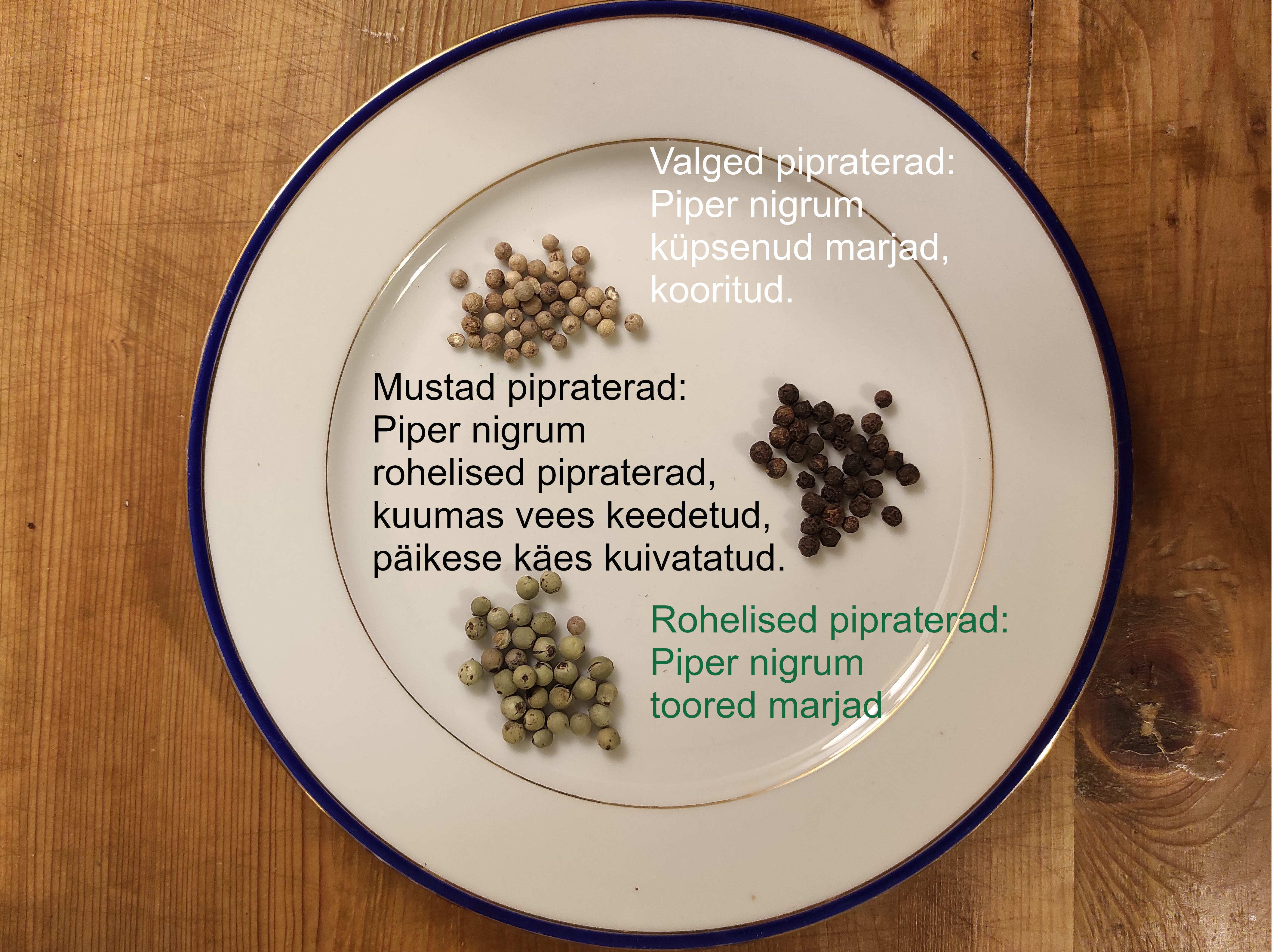 Vahemärkusena olgu veel märgitud, et märksa eksootilisemalt kõlavad roheline ja valge pipar pärinevad samuti sellesama liaani Piper nigrum küljest, kust korjatakse ka musta pipart.